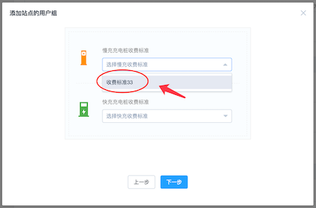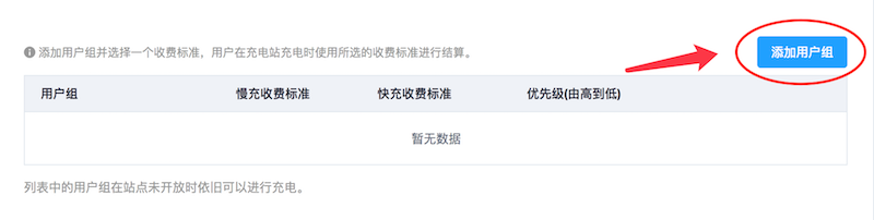 给用户组选择慢充和快充设备的收费标准,此处只能选择“自定义收费标准”,不能使用默认的收费标准。